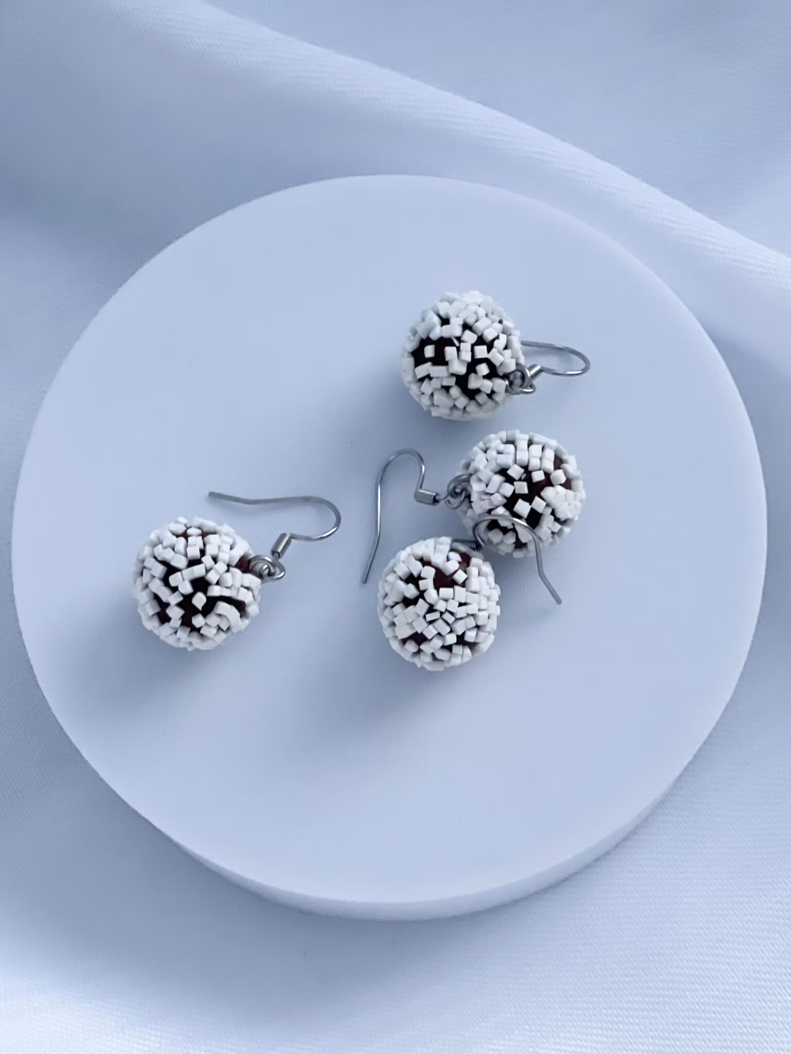 Handgjorda chokladbollsörhängen av polymerlera.