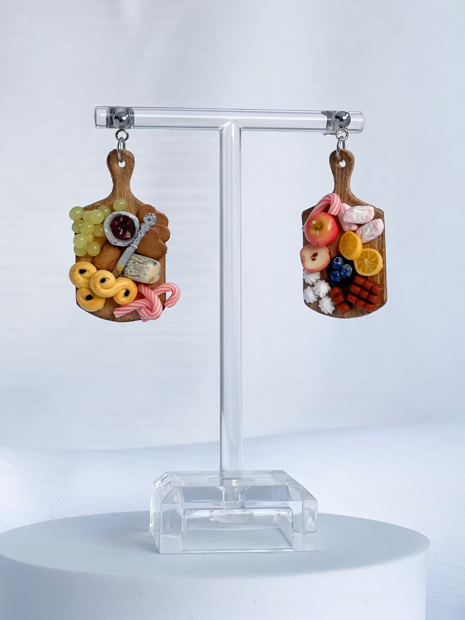 Skärbrädor fyllda med juliga gottigheter, allt handgjort i polymerlera med stor detaljrikedom.