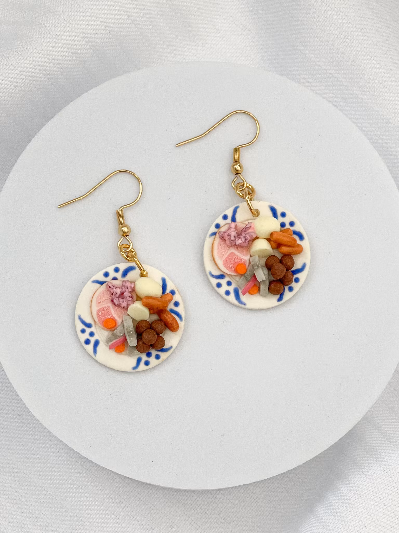 Jultallrikar med favoritjulmaten i miniatyr, allt handgjort i polymerlera.