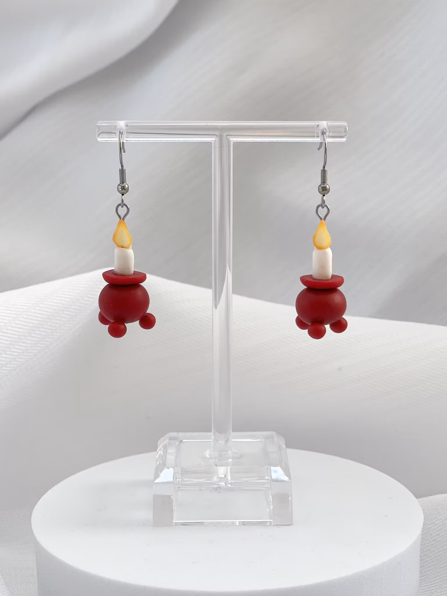 Handgjorda ljusstakar av polymerlera. Lågan är gjord i lera som lyser i mörkret som ger en häftig effekt när ljuset släcks.